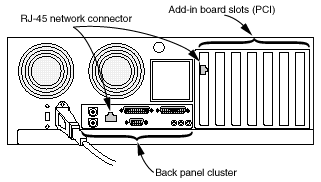 Examine the back panel of the computer to determine if there is a network adapter already installed. The following figure shows the back panel of a