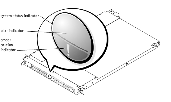 The system bezel incorporates a system status indicator divided into blue and amber system status indicators (see Figure 2-1). The blue indicator lights when the system is operating correctly. The amber caution indicator lights when the system needs attention due to a problem with power, a cooling fan, internal temperature, or a hard drive.