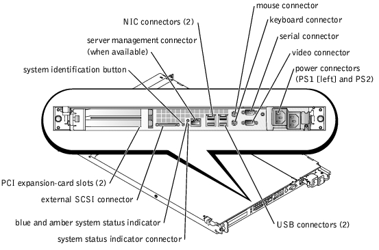 The system indicators and the front and back panel features are illustrated in the following figures. This section also describes each type of message and lists the possible causes and actions you can take to resolve any problems indicated by a message. To determine what type of message you have received, read the following sections.