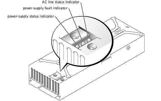 Each hot-pluggable power supply has three indicators, visible when the system doors are open, that indicate whether power is present or whether a power fault has occurred. See "Opening the System Doors" in "Checking Inside the System" for information on accessing the inside of the system.