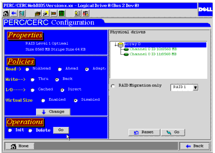 You should initialize each new logical drive that you configure. You can use the Initialize option on the Logical Drives screen to initialize logical drives. Perform the following actions to initialize a logical drive: