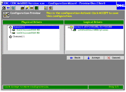 You can use the Configuration Wizard to guide you through the steps required for configuration of the logical drives and physical arrays.