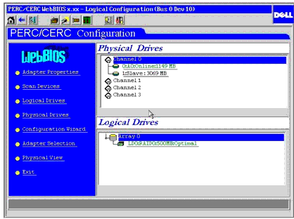 The WebBIOS Configuration Utility is an HTML-based utility available on the RAID controller that allows you to configure and manage RAID arrays and logical drives. You can use this utility in place of or in conjunction with the <Ctrl><M> BIOS Configuration Utility.