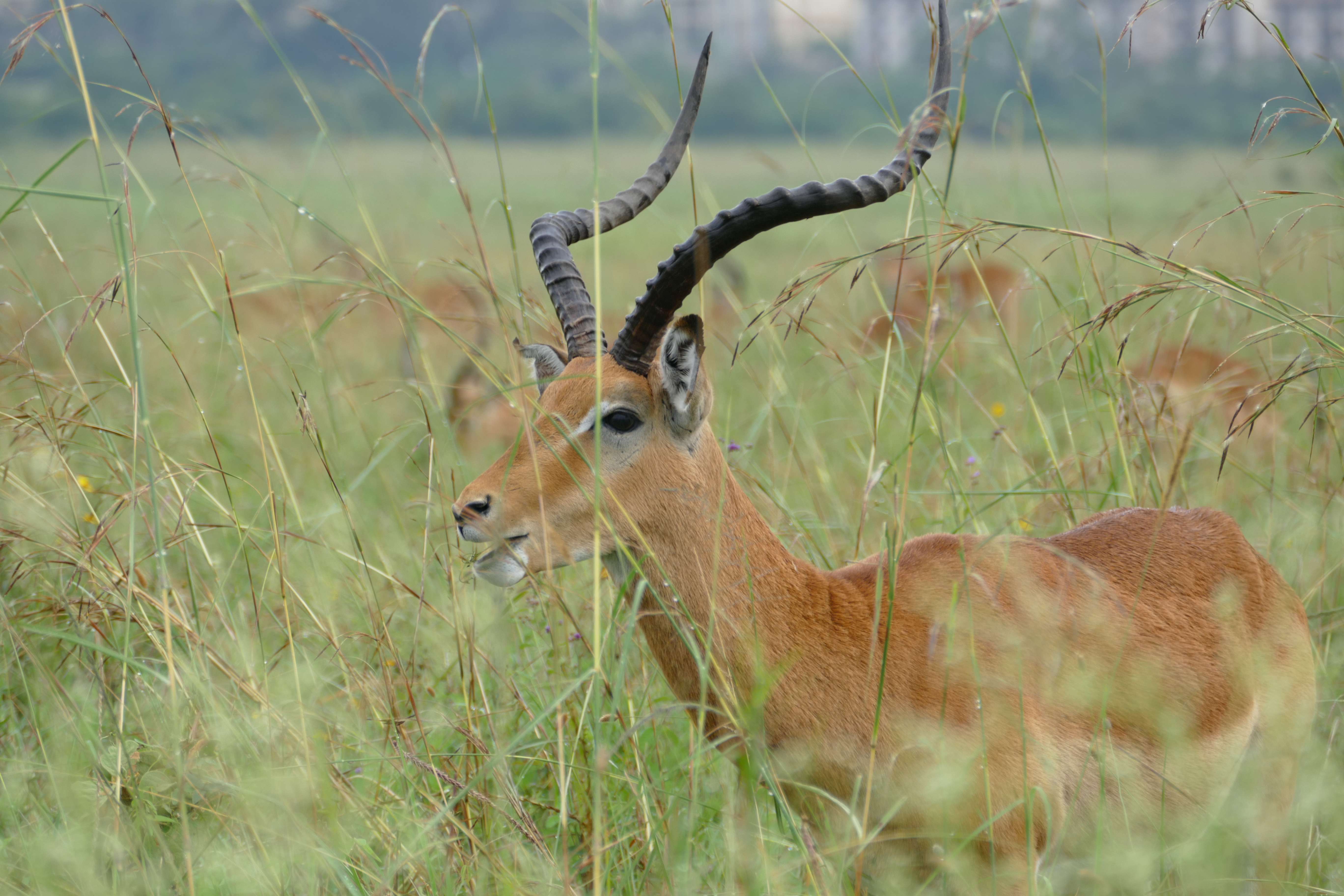 We would see many impalas later on, but we never got as close as this again. A large group of males were grazing near the road. We were still learning to use our new cameras, and the grass was a challenge for autofocus.