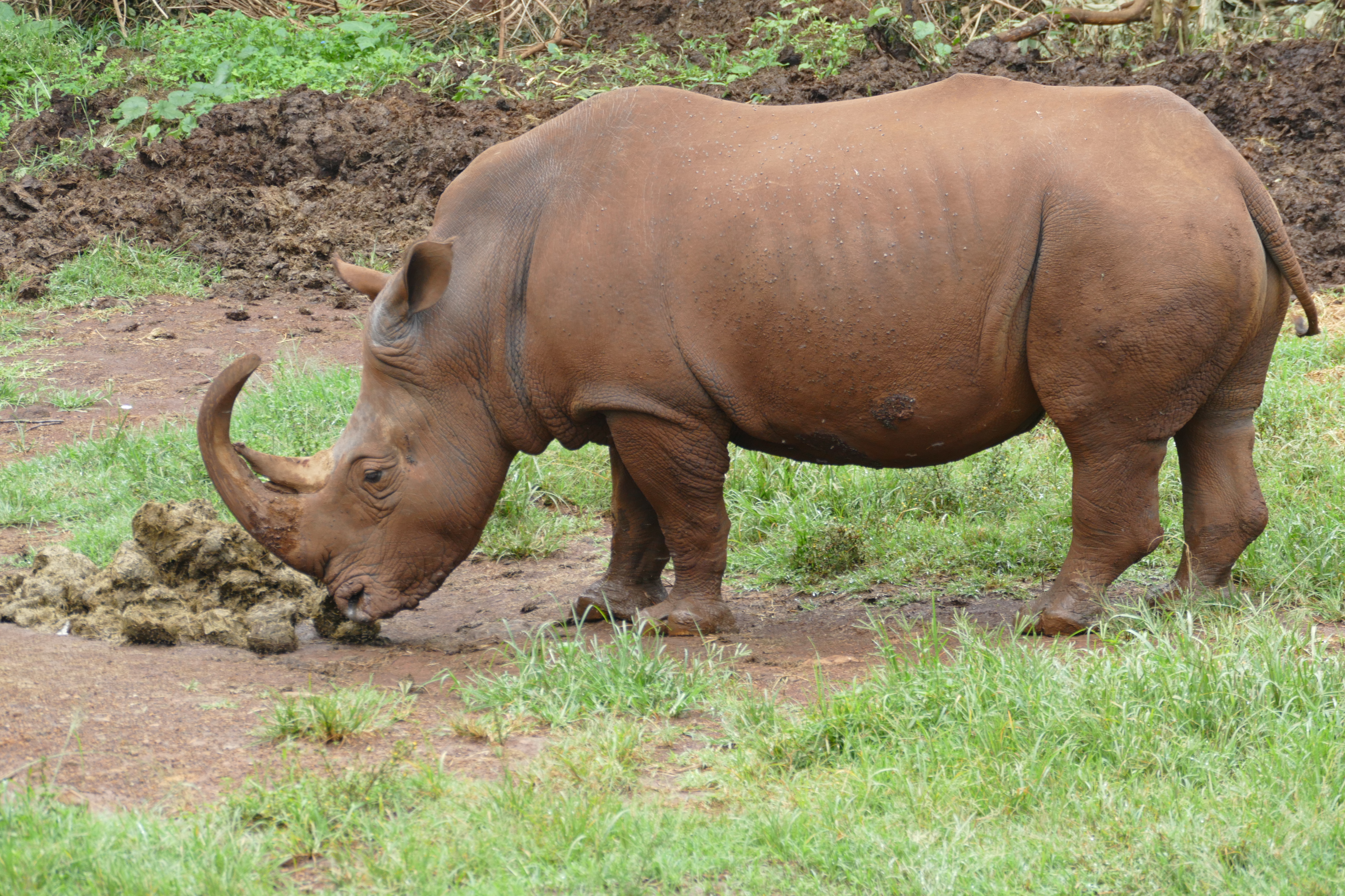 The only rhinos we saw on this trip were in enclosures. This one is a white rhinoceros, though the distinction between white and black is not colour, but lip shape ("white" being a corruption of the Afrikaans word for "wide").