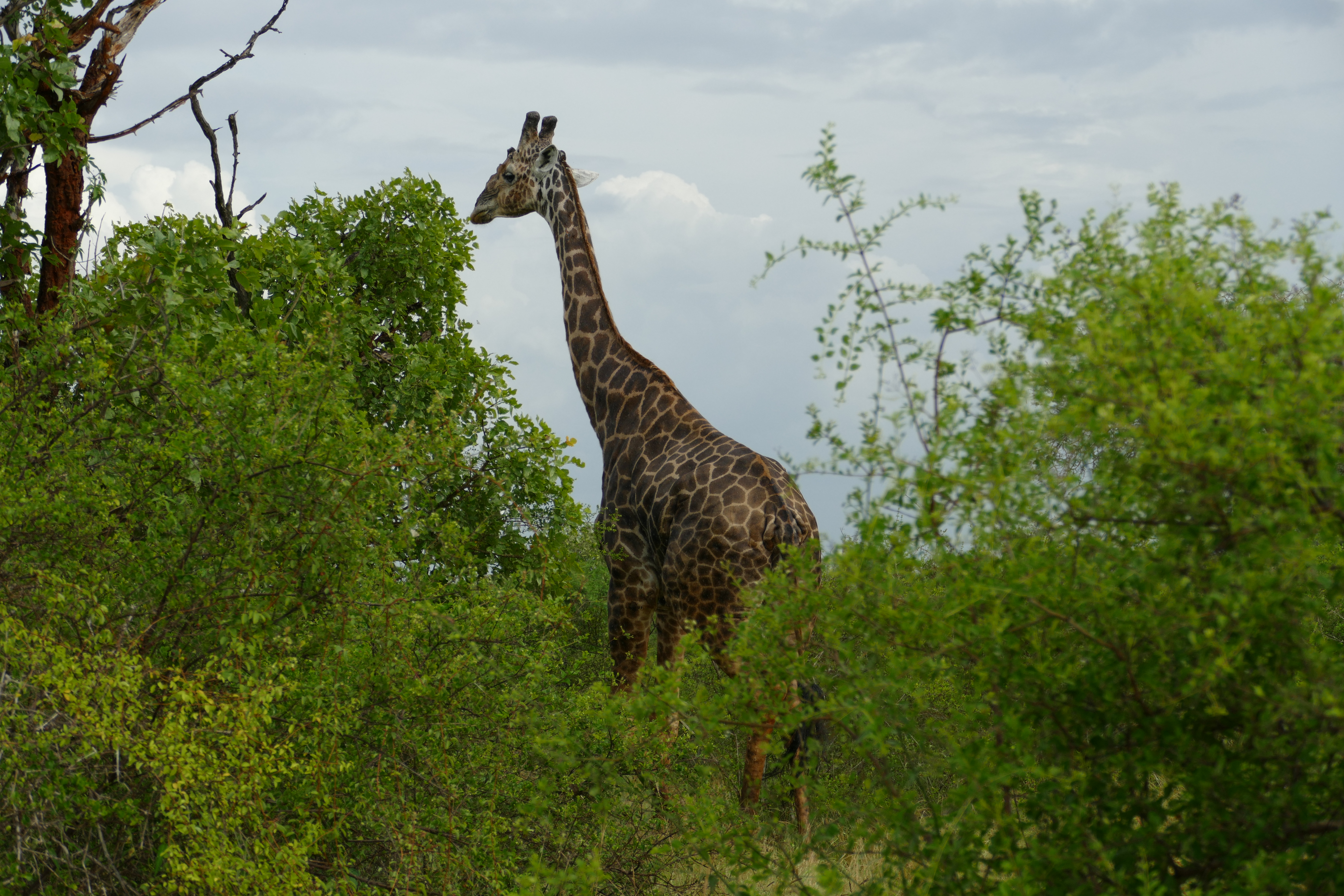 We had spotted wild Maasai giraffes at a great distance in Nairobi National Park, but here we started to see them closer to the road.