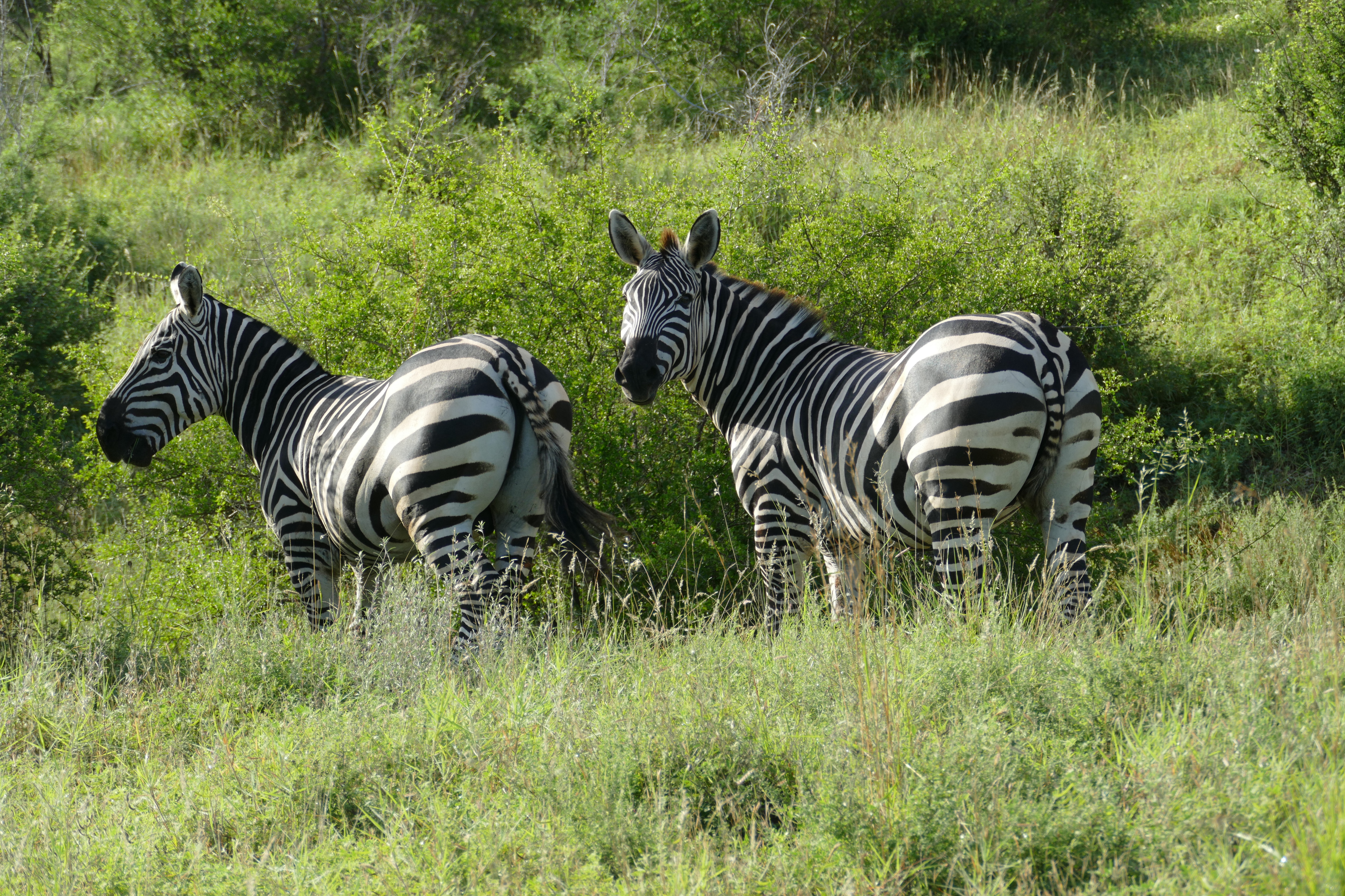 In addition to these two zebras, shining in the morning light, we saw some birds in the distance (including a martial eagle and two ostriches), and some gazelles.