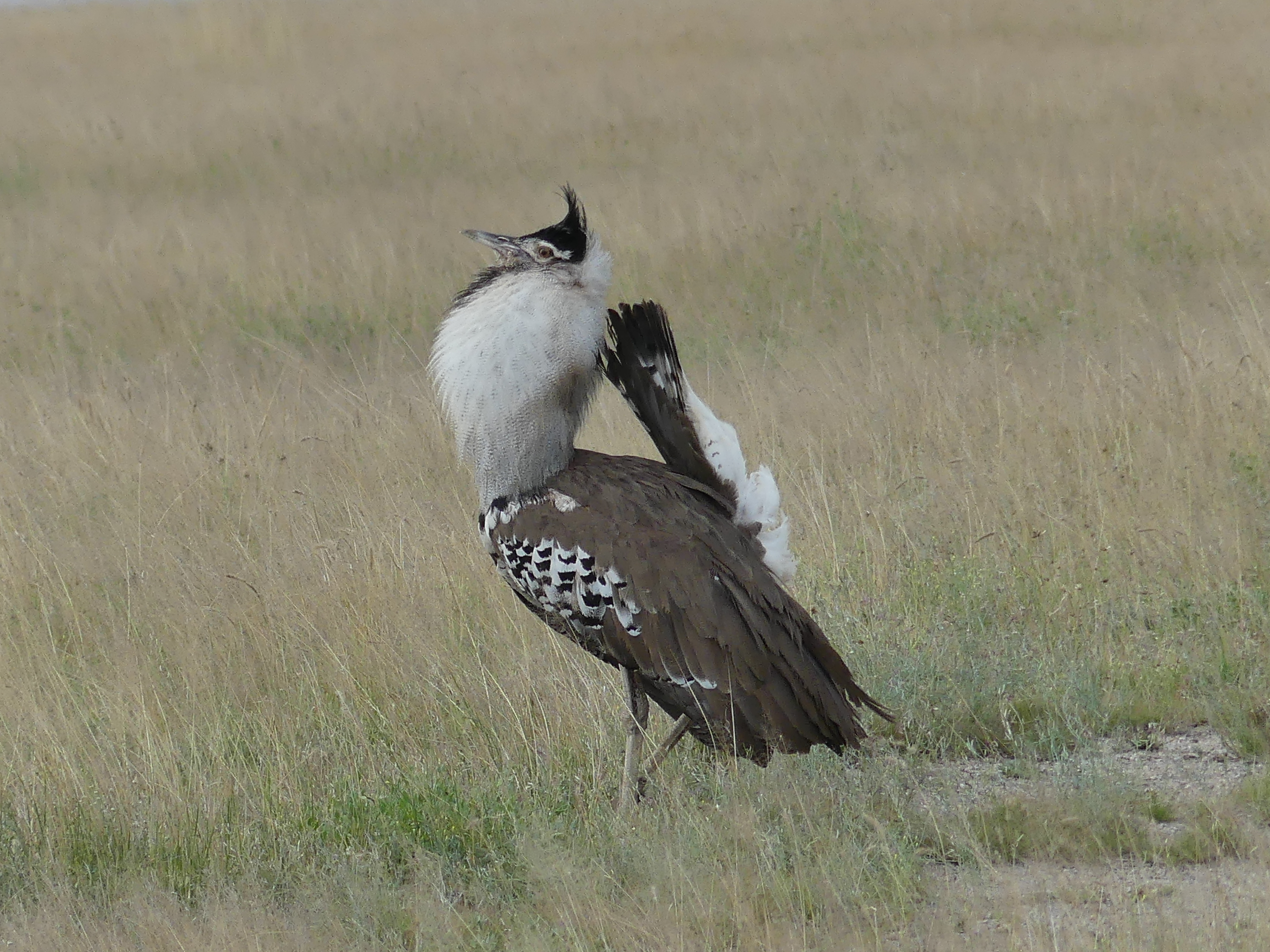 This is what a male kori bustard looks like when it's trying to impress a female.