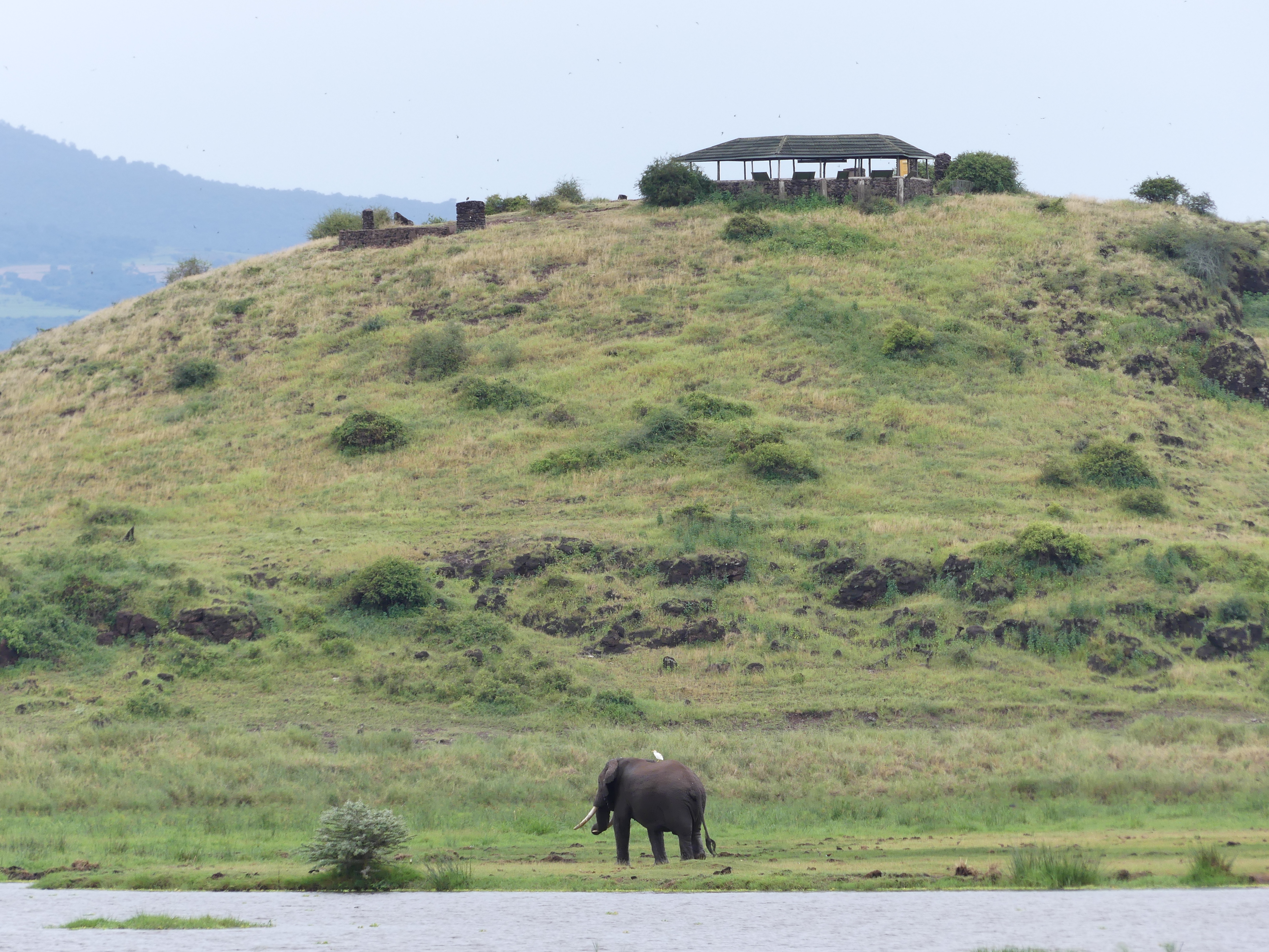 We drove to Observation Hill, where we were allowed to leave the vehicles and walk to the top. A large bull elephant was walking near the base.