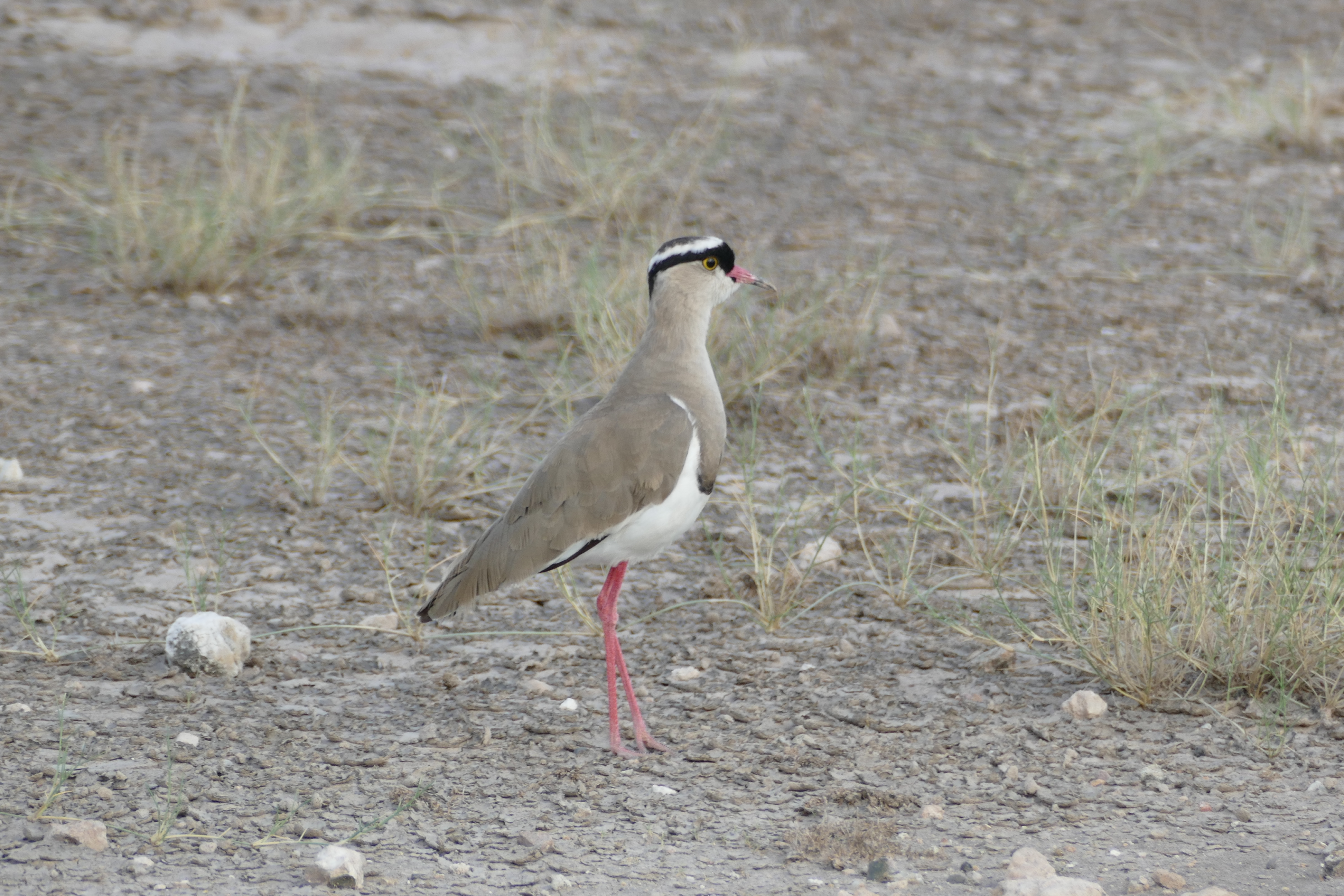 A crowned lapwing or crowned plover.