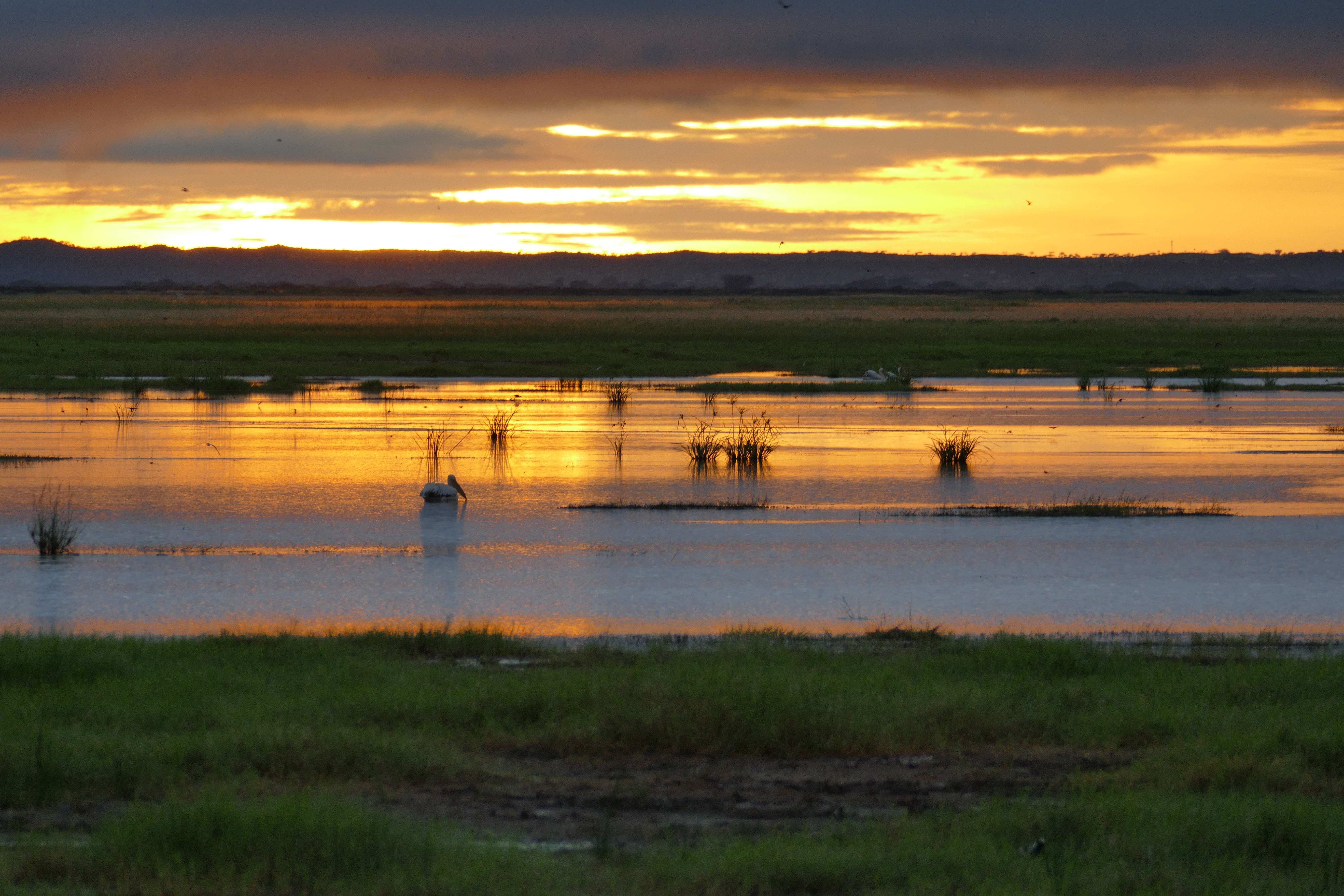 of lesser flamingos walking in shallow water (22 secs, 54MB).