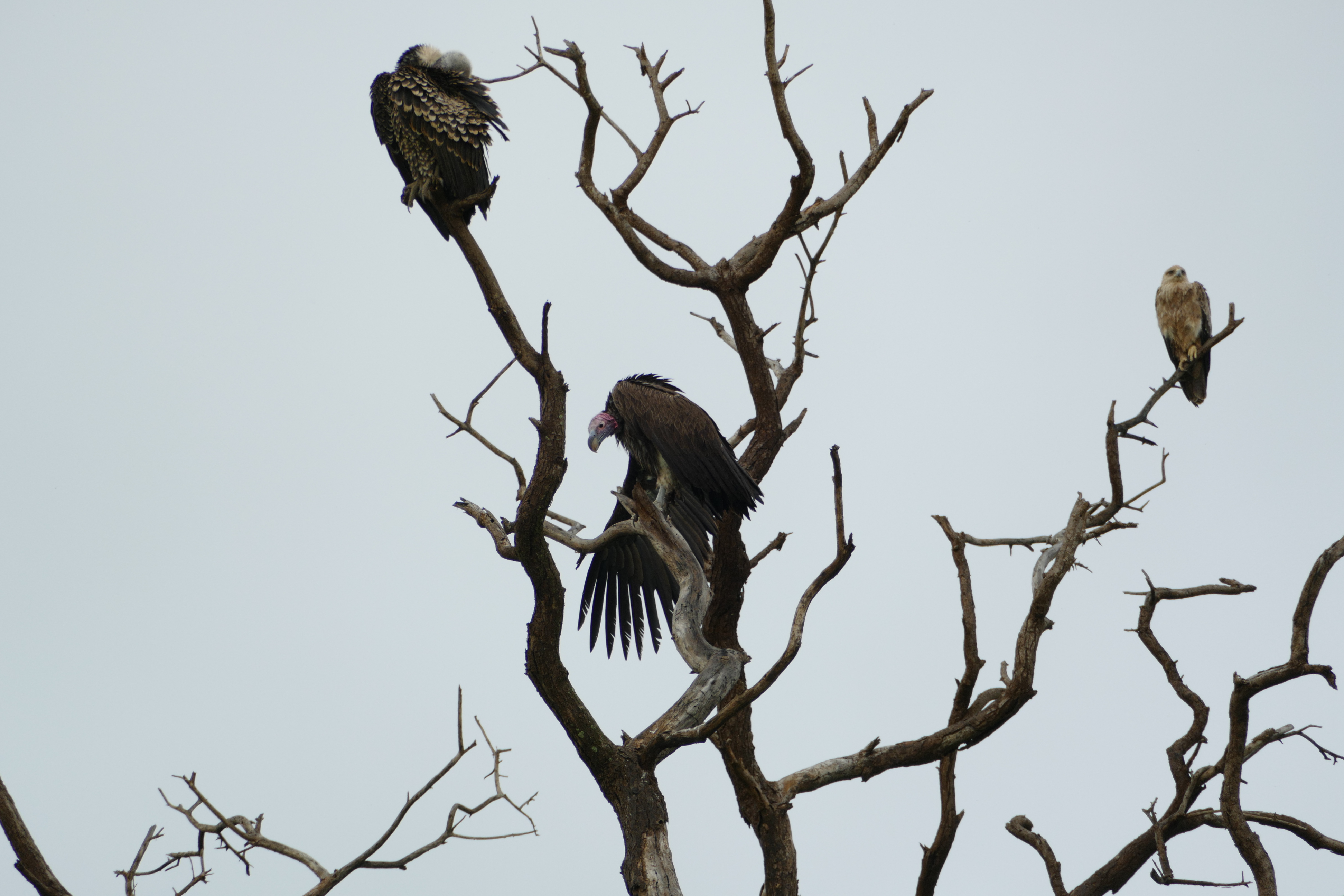 This one tree had a Ruppell's griffon vulture, two lappet-faced vultures (one out of the shot just to the left), and a tawny eagle.
