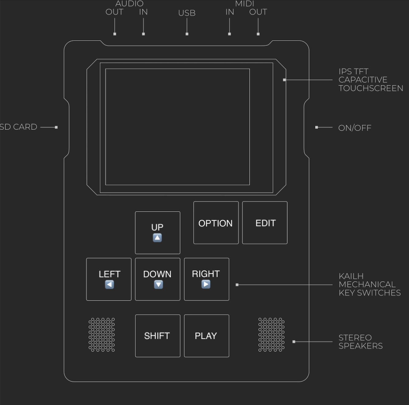 We will adopt the convention for keys and key combos from the M8 manual, so the up key is called [UP]. We’ll see how key combos are succinctly described when we get to them shortly.
