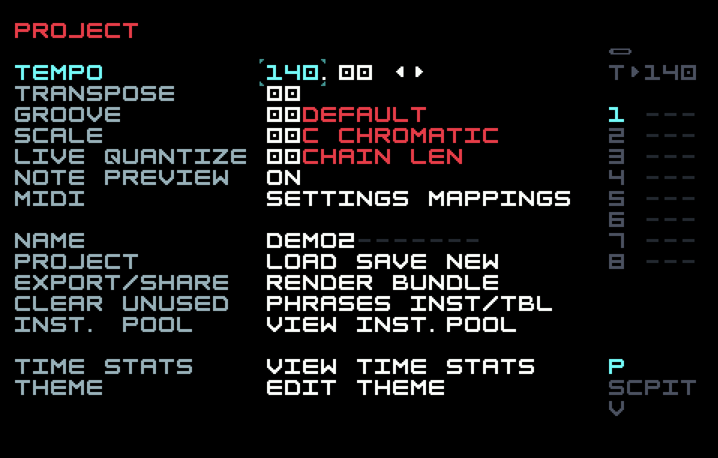 Recall that we said in the introduction that a track is a sequence of chains, a chain is a sequence of phrases, and a phrase holds sixteen possible notes.