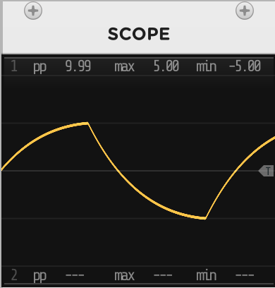 When resonance is turned up high, some filters (including the simulation in VCF) will self-oscillate, making sound at the cutoff frequency without the need for input. This oscillation is truly sinusoidal in nature, unlike the oscillators described above which derive sines from triangle or sawtooth waveforms using waveshaping. If the cutoff CV input tracks V/oct (which takes work, so it’s not always implemented, but it is in VCF), the filter can be played musically. Another possibility is to put the resonance just below self-oscillation, and send a gate or trigger into the filter input. This "pings" or excites the filter into emitting a burst of sound, which can sound like a percussion instrument. Some analog filters are prized mainly for these last two qualities, rather than for their core filtering ability.