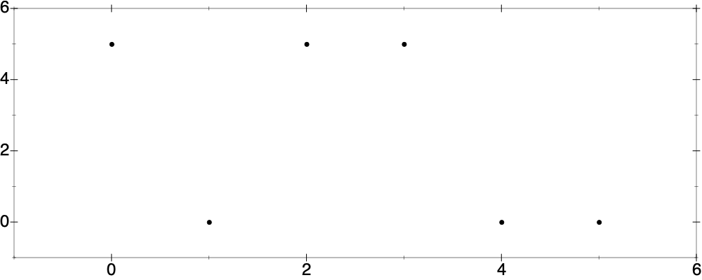As mentioned briefly at the beginning, to move from our idealized mathematical conception of sound as a voltage-time graph, we have to discretize in both the time domain and the voltage domain. A WAV file contains samples taken at 44100Hz, each sample a 16-bit quantity, which we can think of as an integer between 0 and 65535 inclusive, or these scaled to be equally spaced between -5V and 5V in our standard voltage-time view.