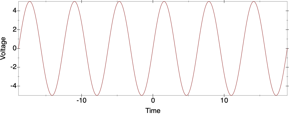 We have arrived at the mathematical quantity that we can work with: voltage as a function of time. The unit of voltage is the volt (named after Alessandro Volta, who first constructed a battery in 1799) and abbreviated with a capital V, so we can speak of 5V or five volts. An electronic musical instrument creates a rapidly-varying voltage, which when used to drive a speaker, produces music. But there is one further complication, whose effects will sometimes be noticeable in what we do.