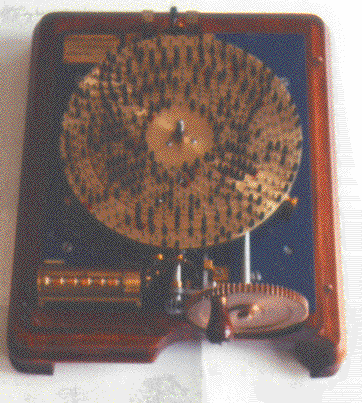 In this picture, we see the Carissan machine "programmed" up to solve a problem. The armature, which detects solutions, has been removed.