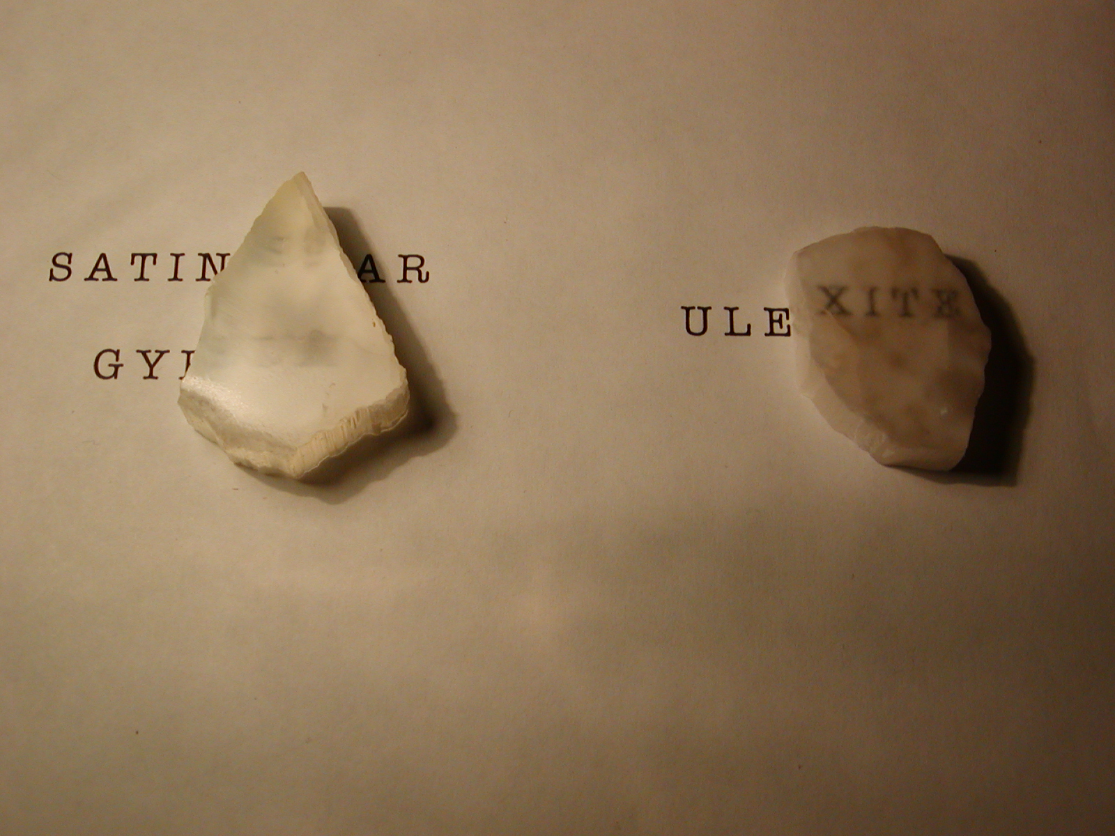Figure 6: satin spar gypsum (left) and ulexite (right) viewed at a 20o angle.