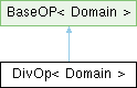 Inheritance diagram for DivOp< Domain >:Public Types | |