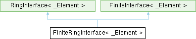 Inheritance diagram for FiniteRingInterface< _Element >:Public Types | |