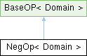 Inheritance diagram for NegOp< Domain >:Public Types | |
