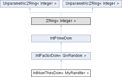 Inheritance diagram for IntNumTheoDom< MyRandIter >:Public Member Functions | |