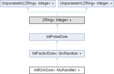 Inheritance diagram for IntRSADom< MyRandIter >:Public Member Functions | |