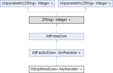 Inheritance diagram for IntSqrtModDom< MyRandIter >:Public Member Functions | |