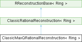 Inheritance diagram for ClassicMaxQRationalReconstruction< Ring >:Public Types | |