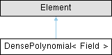 A dense GivaroPolynomial is an Element of Givaro::Poly1Dom and a reference to a PolynomialDomain which handles most operations over such polynomials.