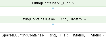 Inheritance diagram for SparseLULiftingContainer< _Ring, _Field, _IMatrix, _FMatrix >:Public Types | |