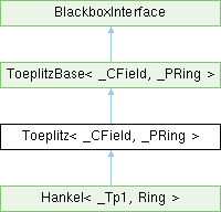 Inheritance diagram for Toeplitz< _CField, _PRing >:Public Types | |