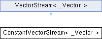 Inheritance diagram for ConstantVectorStream< _Vector >:Public Member Functions | |