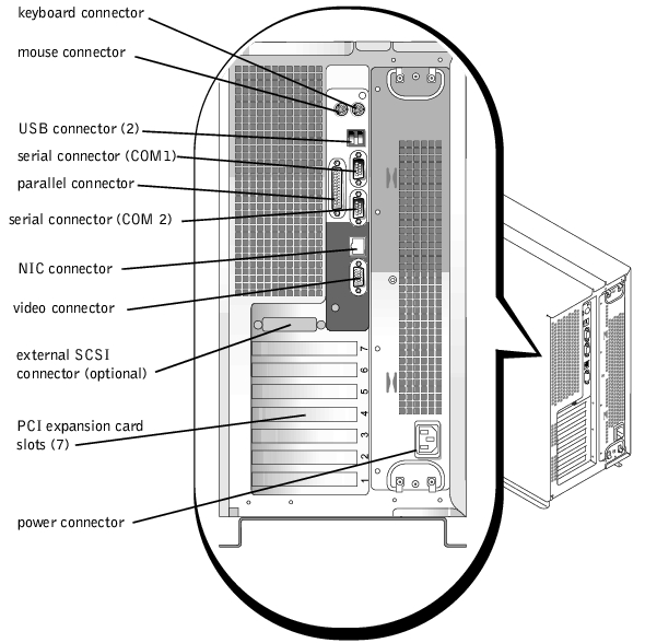 - Seven PCI slots located on the system board. PCI slots 1 and 2 are 64-bit, 66-MHz slots; PCI slots 3 though 5 are 64-bit, 33-MHz slots. Slots 6 and 7 are 32-bit, 33-MHz slots. Slot 7 can be used for the optional DRAC or other PCI-compatible options.