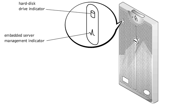 Two indicators are located on the front panel: the hard-disk drive indicator and the ESM indicator. The ESM indicator flashes amber when the system needs attention. The amber ESM indicator indicates a problem with the power, the fan, the temperature, hard-disk drives, or the PCI expansion cards. The power supplies and hard-disk drives also have indicators which can be seen when the bezel is removed. The CD-ROM and diskette drives have green activity indicators.