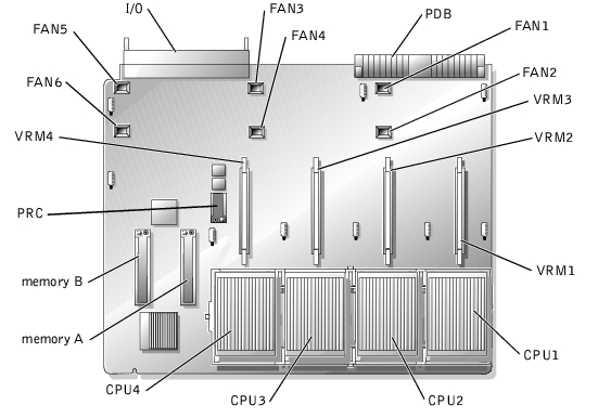 See Figure A-6 and Table A-4 for the location and description of the peripheral riser card connectors.