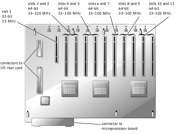 Figure A-3 shows the expansion slots, buses, and bus operating speeds.