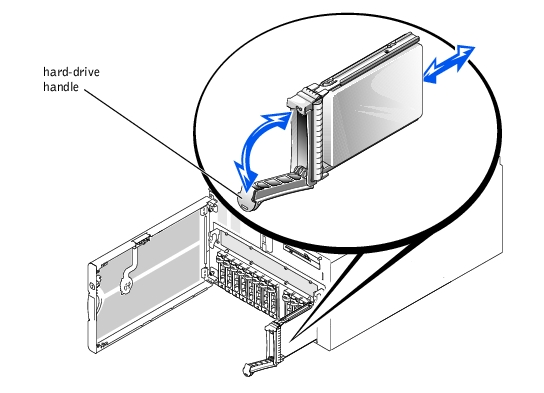 NOTICE: Do not insert a hard-drive carrier and attempt to lock its handle next to a partially installed carrier. Doing so can damage the partially installed carrier's shield spring and make it unusable. Ensure that the adjacent drive carrier is fully installed. |
