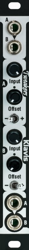 Befaco A*B+C is a utility module that does a lot: two four-quadrant VCAs (such as on the lower part of Falistri) plus offsets, which are capable of attenuation, inversion, and mixing.