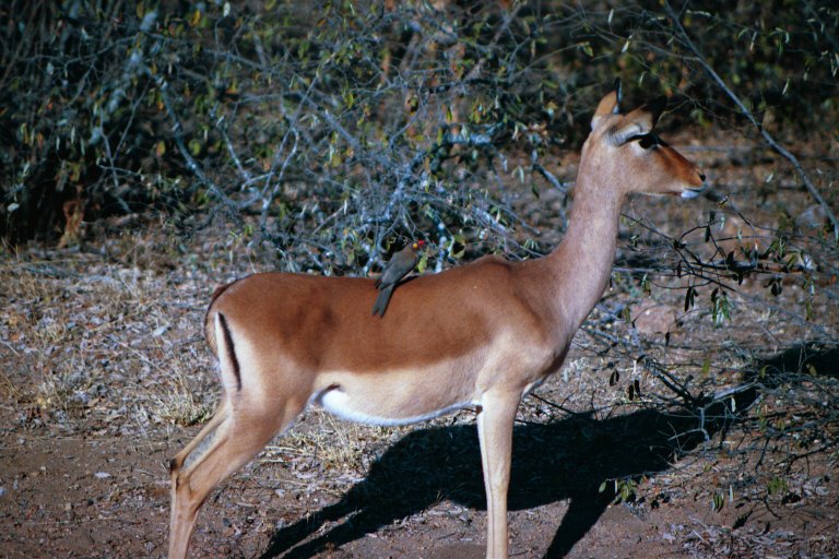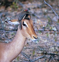 - Impala with red-billed oxpecker on back, Kruger National Park