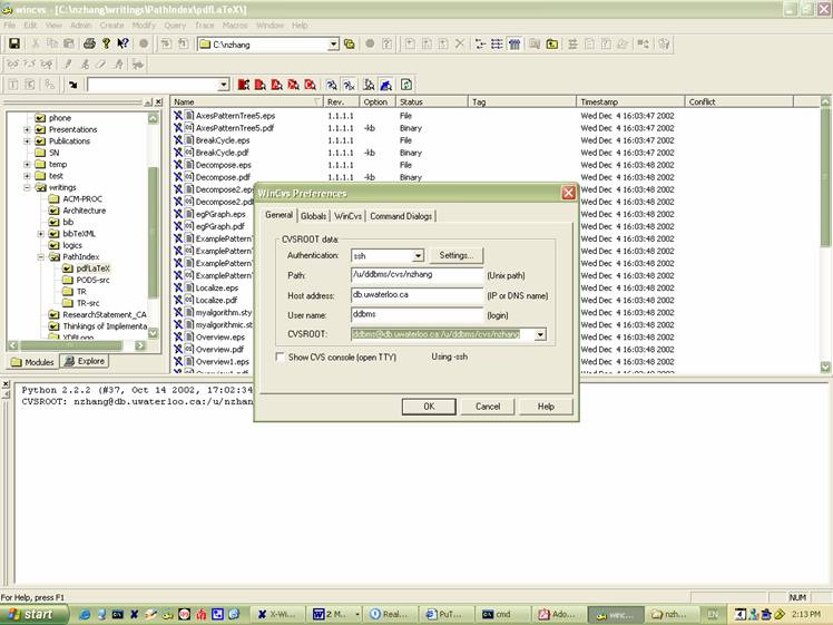 In order to run WinCVS, you need to install Python, which can be downloaded from http://www.python.org/. The current version is 2.2.2 and it works fine with WinCVS 1.3b10.