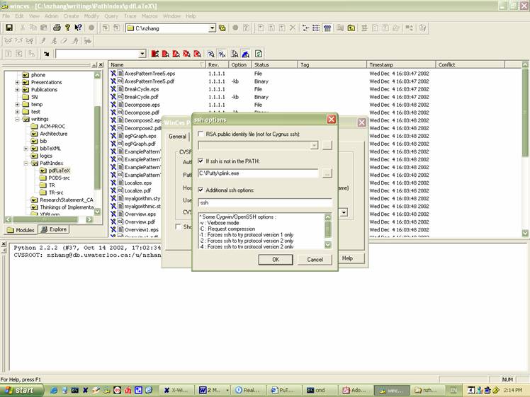 C:\PuTTY> plink –ssh ddbms@db.uwaterloo.ca ls